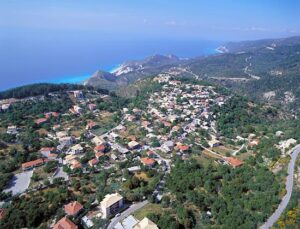Traditional mountain village, with great panoramic views to the western side of Lefkada island.